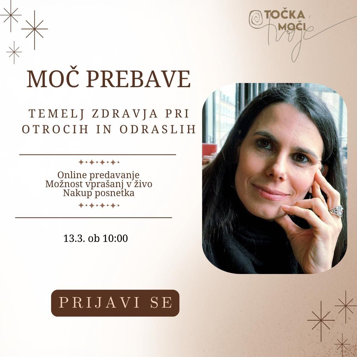 Predavanje vodi Jasna Matjašič, doktorica veterinarske medicine, holistična terapevtka naravnega zdravljenja in ustanoviteljica centra Točka tvoje moči. Že več kot 20 let profesionalno deluje na področju naravnega in celostnega pristopa k zdravju posameznika. Je tudi mama treh danes že skoraj odraslih otrok, pri katerih je večino zdravstvenih izzivov uspešno reševala na naraven način.